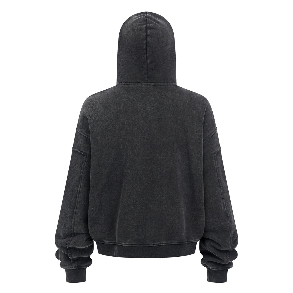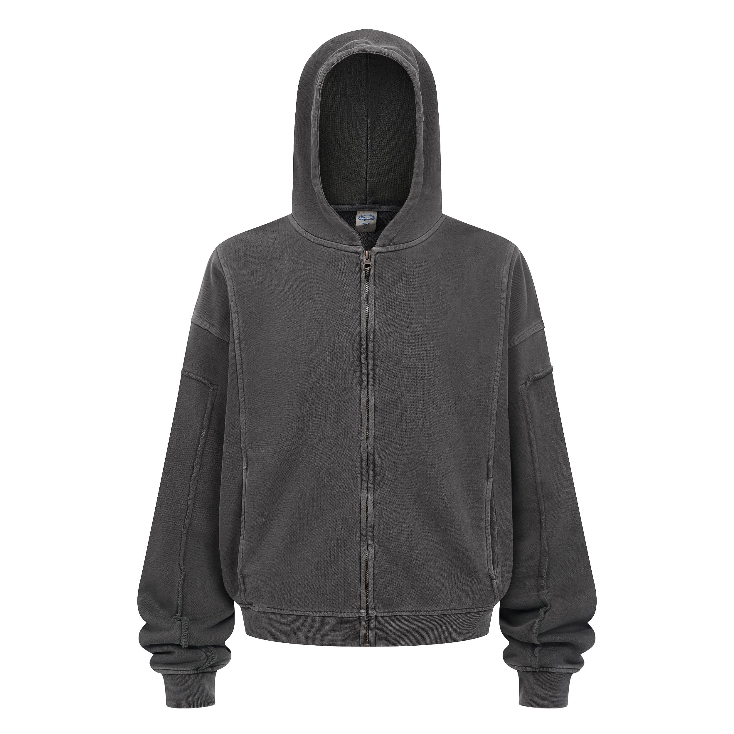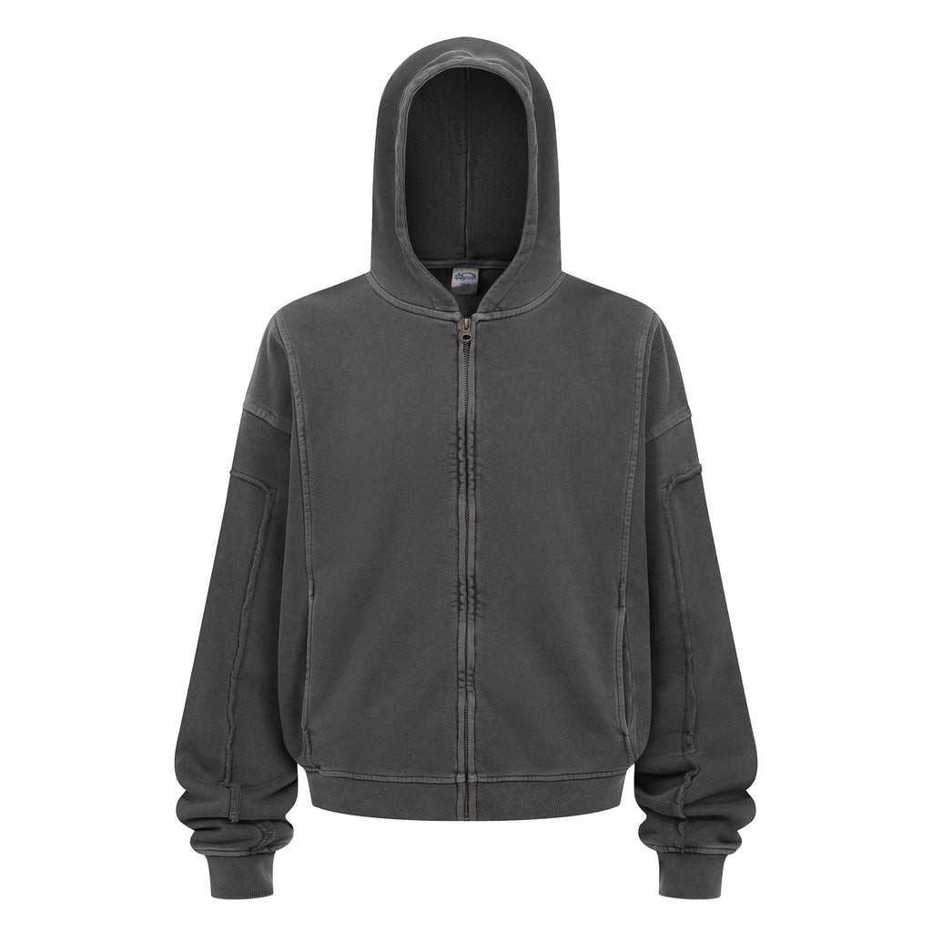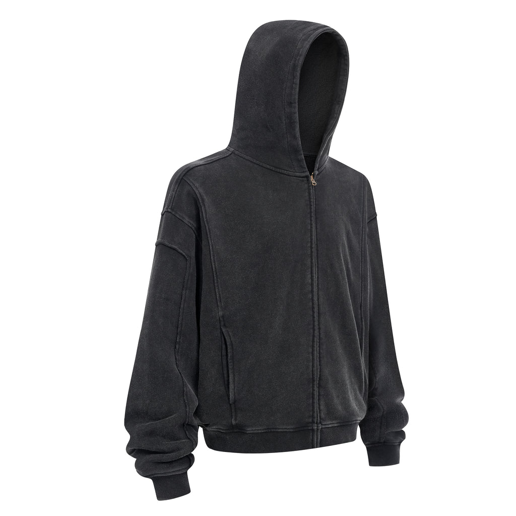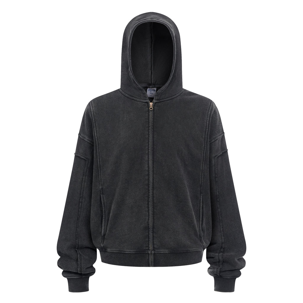 430GSM Boxy Fit Splicing Washed Zip Up Jacket
