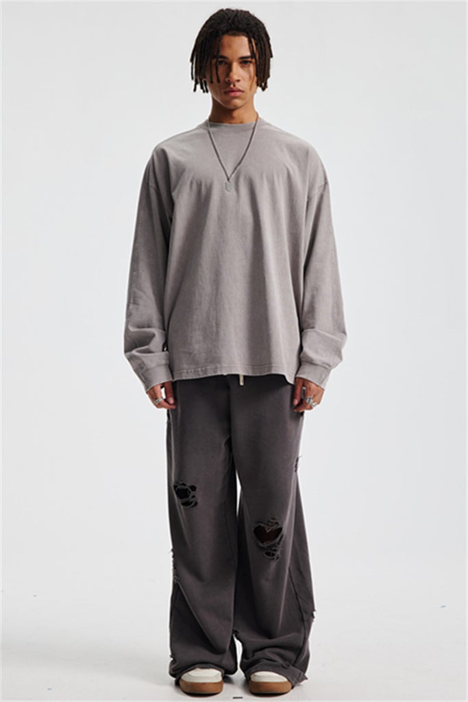 285GSM Contrast Long Sleeve Pigment Dyed Tee